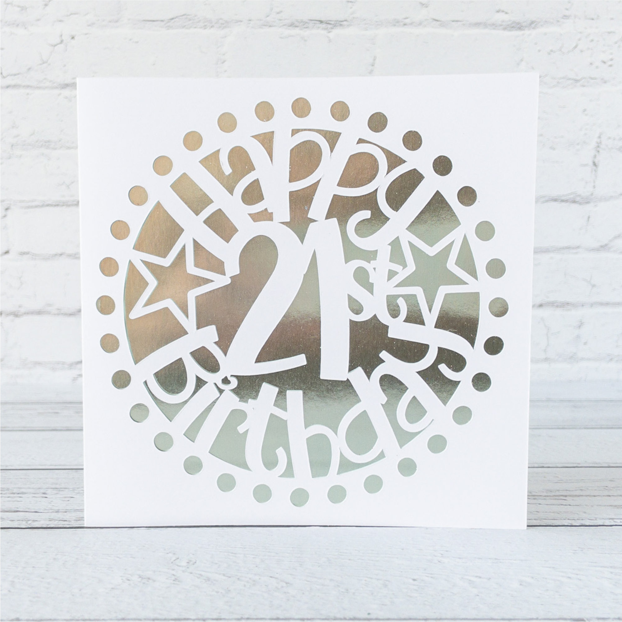 This "Happy 21st" SVG is a stylish way to celebrate a milestone birthday. With its modern circle and star frame design, this versatile file is perfect for customising cards, gifts, or décor, and is suitable for use with both vinyl and cardstock.
