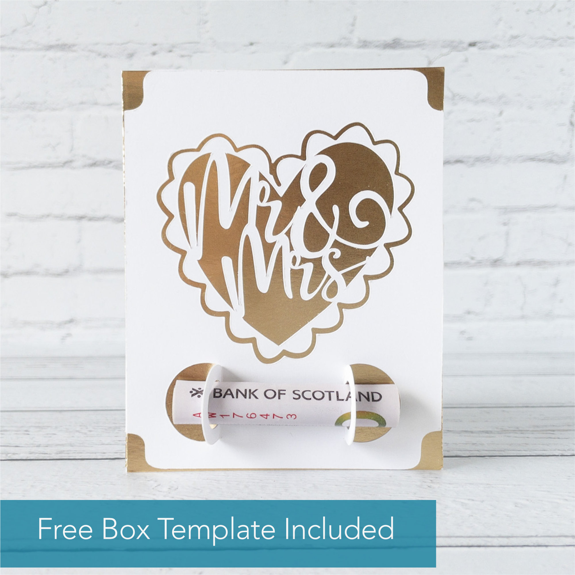 This "Mr & Mrs" wedding money card SVG is the ideal way to make your gift feel personal and memorable. With the included gift box template, your creation will be presented beautifully.